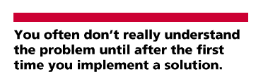Or, to put it another way, you often don't really understand the problem until after the first time you implement a solution. The second time, maybe you know enough to do it right. So if you want to get it right, be ready to start over at least once.